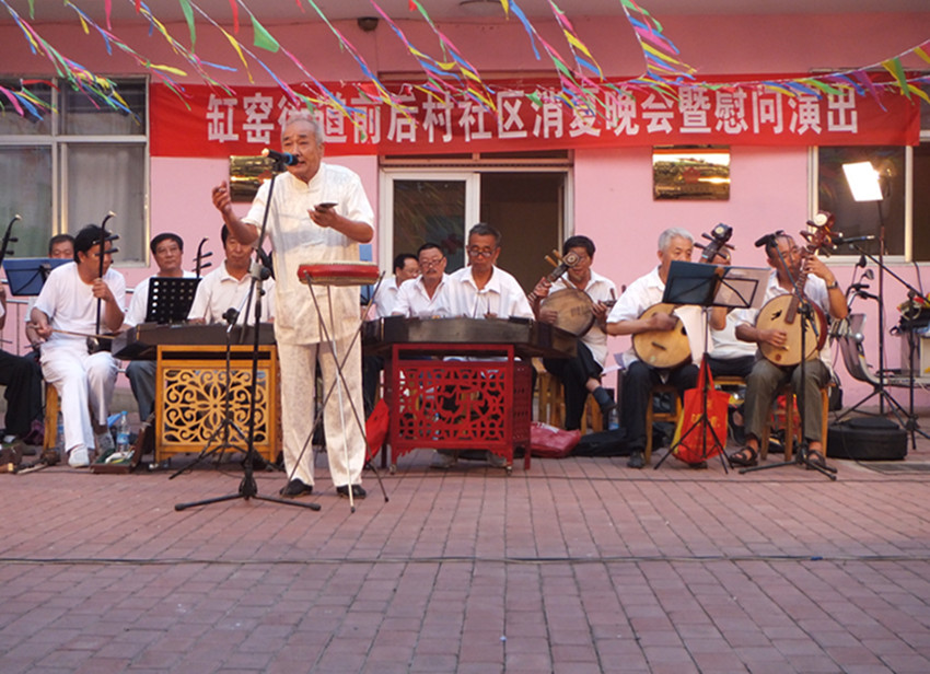 夕阳的余晖洒满了福星公寓的院子,一会院子里便热闹了起来,缸窑街道前后村社区消夏晚会暨慰问演出在我公寓举行,看演出的除了公寓的老人还有周围社区的居民,演出队伍是社区精心组织的文艺爱好者,乐队的组成多是退休的老人,但阵势宏大,演技高超,歌唱演员有板有眼,赢得了在场人员的阵阵掌声。